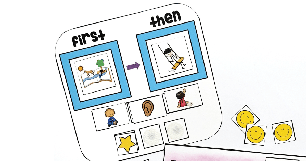 A First-Then board is a straightforward visual tool that helps students anticipate what’s coming next. It is easy to implement and use and can be used with just a whiteboard! For instance, you might show the student, “first worksheet, then outside.” This clear format reassures students about what’s happening now and what to expect next, reducing the anxiety often associated with transitions. The beauty of the first-then board is its versatility; it can be used repeatedly throughout the day, not just during difficult transitions or when a student is showing signs of problem behavior. For example, you can use it when moving between subjects, from one classroom to another, or even during breaks.