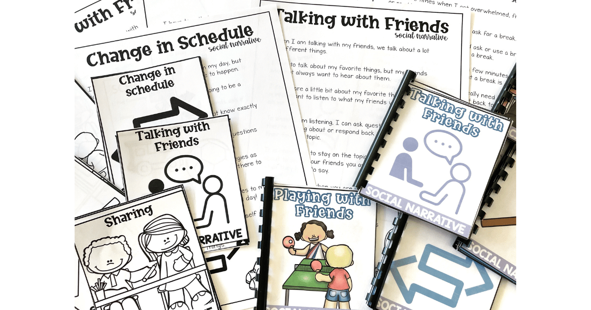 You can create a social story for almost any transition, like going from playtime to clean-up or moving from one class to another. If you need some social narratives to try out or see how the format is, you can grab 5 free ones here!