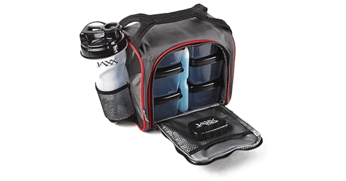 - Features: Includes portion control containers, ice pack, shaker cup, and insulated bag. The meal prep containers fit perfectly inside so no more playing Tetris trying to get everything to fit.