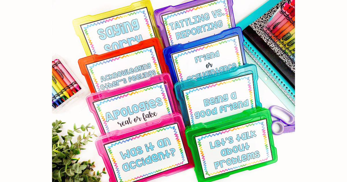 A way to work on these skills is through hands on task boxes that target these skills. A perfect one would be relationship skills. This set cover 16 different specific skills that can enhance social communication and interaction. Grab them here.