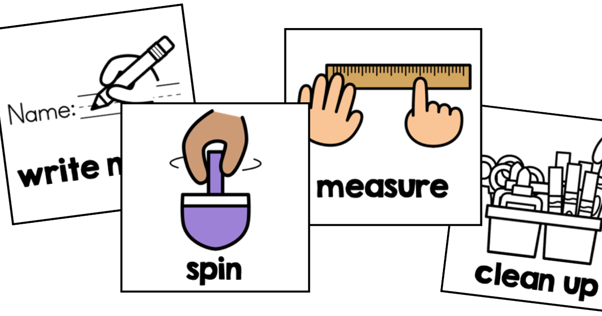 Sometimes, it’s easier for students to follow directions when they can see a picture of what they’re supposed to do. It is helpful when you have a set of instructions with several steps to have the images that match up on the board. That way if you have a student who is distracted, one who is going to the rest room, and another who comes mid lesson back from speech therapy, you can just point to the board and they can jump right in. They are great visual reminders of what steps students need to take.
