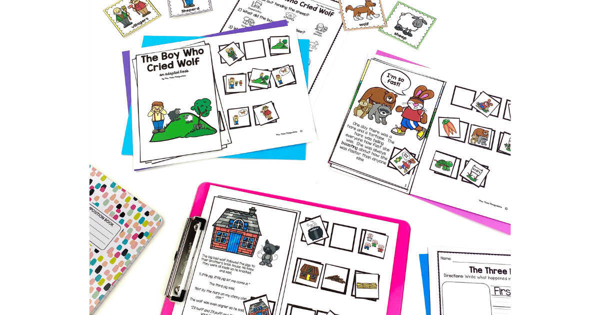 Reduces cognitive load for easier understanding; breaking down big concepts into smaller, bite-sized chunks to help students comprehend the teaching. If you have a student that is in the general education setting, but not on the same grade-level, these books can help bridge that gap. You can make an adapted book from the same text you’re using inside of the classroom, choosing simpler concepts that are targeting IEP goals. While the class engages in the same text, your student is still engaged, just on a more appropriate level for their needs.