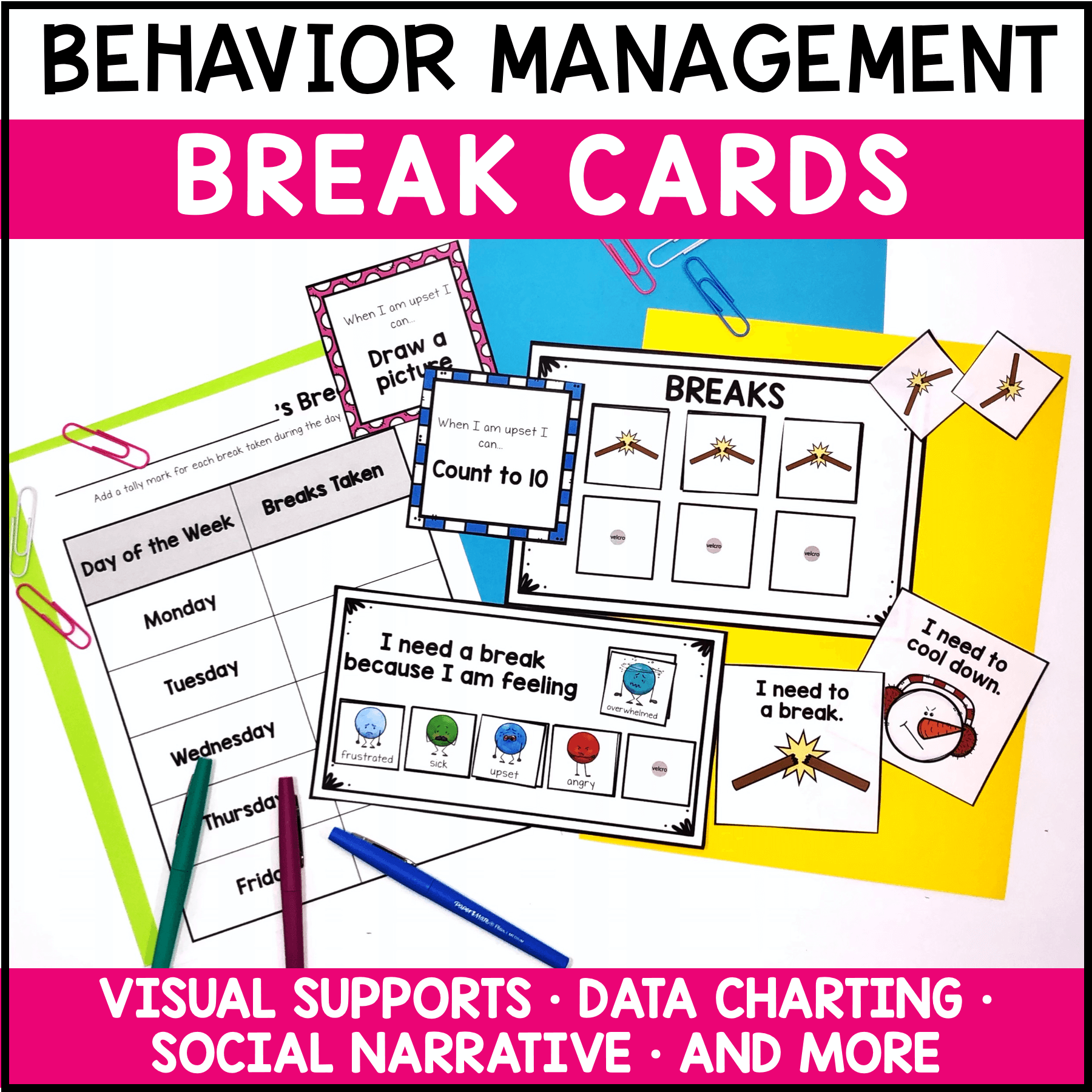 These cool down break cards contain many behavioral supports to help implement breaks for students with disabilities.
