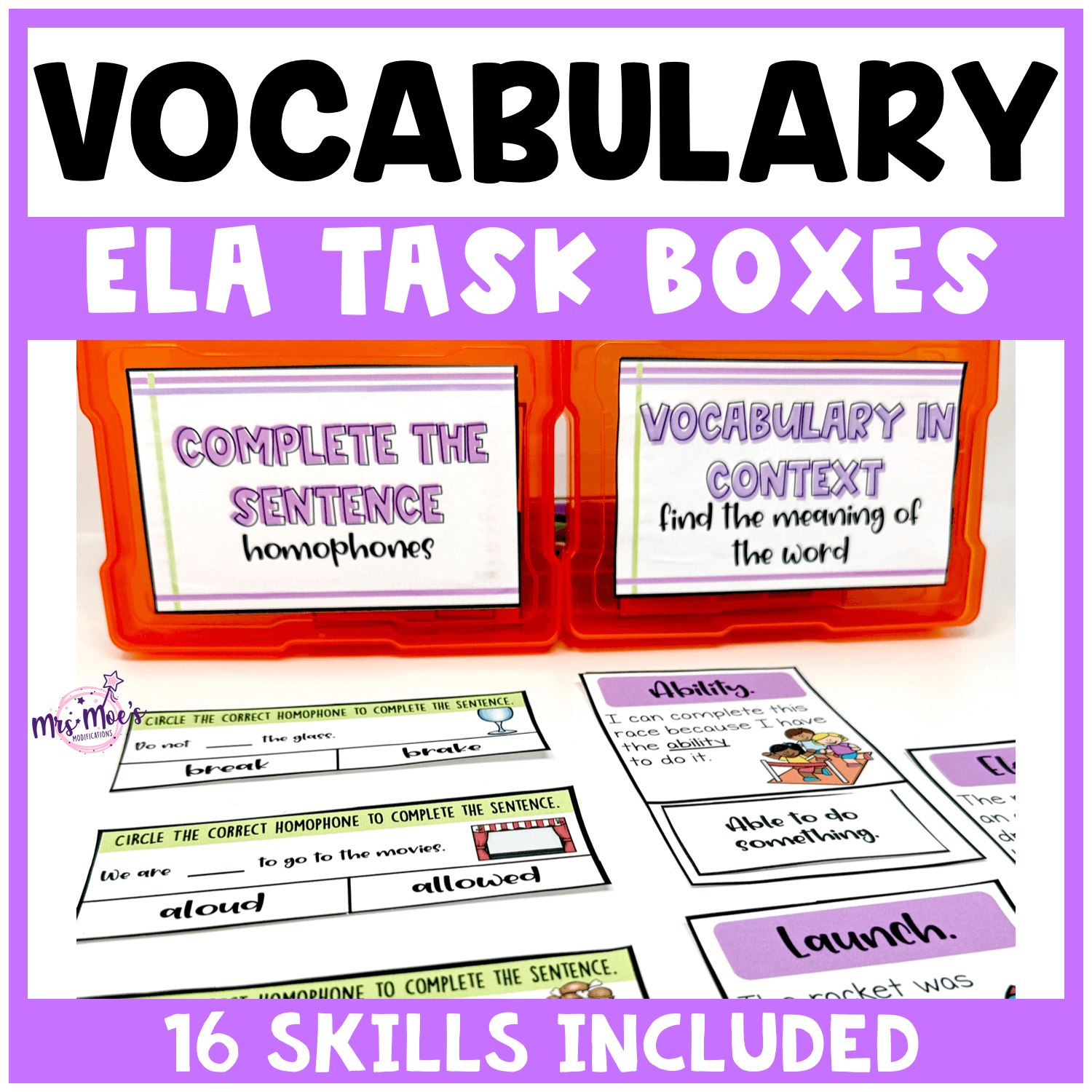 These task boxes are the perfect replacement for boring vocabulary practice. No more worksheets, but rather hands on learning.